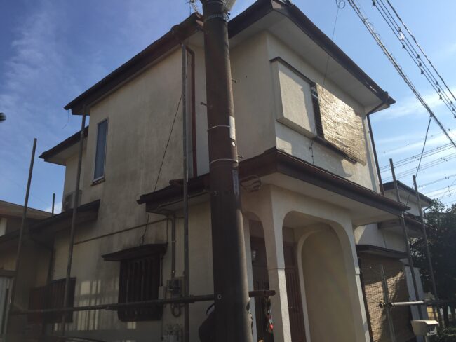 川越市O邸外部リフォーム工事外部塗装足場組み始め