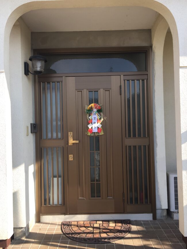 最近は、付近の治安が悪くなってしまっているとのお話しだったので、暮れの内に頑丈なアルミ製のドアに変更出来て安心して頂きました。 この後は、外壁塗装工事をして仕あがりです。