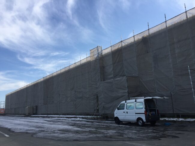 群馬県伊勢崎市T社外部止水塗装工事 架設足場組み立て完了です 施工事例ブログBy ウイッシュ2016年2月5日本日より2日かけて高圧洗浄を行います。 まだ道が凍っている 箇所もあり、足元に注意しながらの施工です。