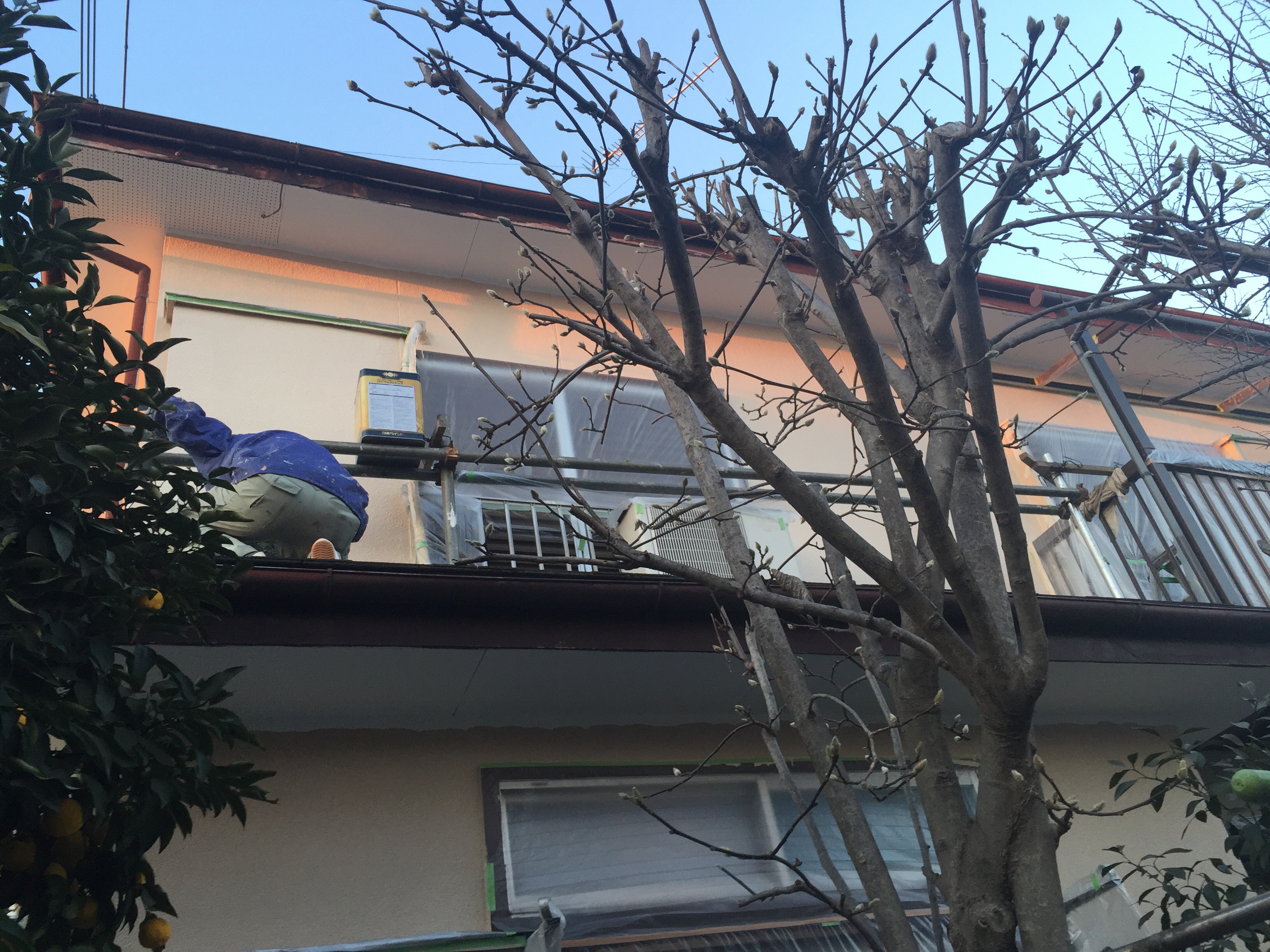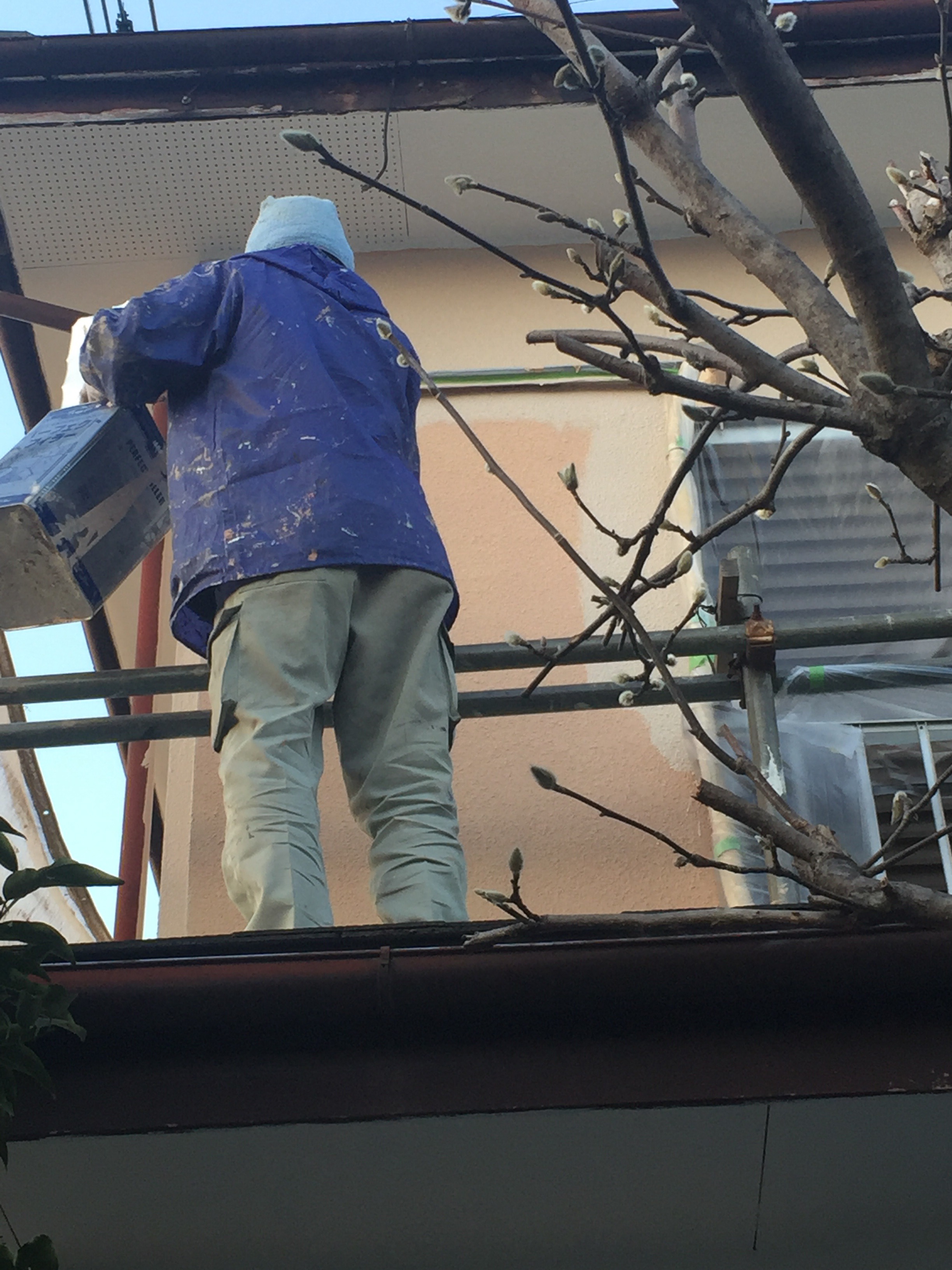 外壁の仕上げ塗りです。 赤みがかった色の部分は、中塗りの箇所です。 明日から雨樋の交換工事も同時に行います。 Post navigationPreviousPrevious post:八王子市M邸NextNext post:小平市T社アスファルト改修工事その他の記事立川市某アパート ハクビシン害獣駆除2021年3月30日入間市K邸屋根塗装工事2020年11月16日CHOHUのデモカー来ました。2019年4月9日国分寺市:A邸・躯体式バルコニー屋根設置工事2019年4月5日東久留米市:Y邸・フェンス交換と外壁リペア工事2019年3月17日所沢市:K邸・伸縮ゲート交換工事2019年3月17日