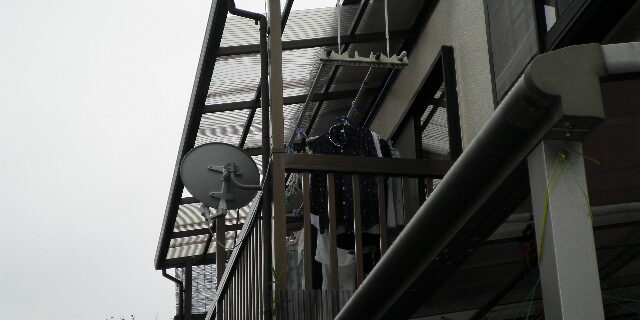 屋根ふき材が、波板なので風が吹くとバタバタ音がして、ご近所迷惑になっている事と 強風で、波板が飛んでしまったので、この際だからバルコニー屋根を全交換したいとの ご希望でした。 (施工前) (施工後) Post navigationPreviousPrevious post:東久留米市:W邸・伸縮ゲート交換工事NextNext post:東大和市:M邸・カーポート(屋根)交換工事その他の記事国分寺市:A邸・躯体式バルコニー屋根設置工事2019年4月5日東久留米市:Y邸・フェンス交換と外壁リペア工事2019年3月17日所沢市:K邸・伸縮ゲート交換工事2019年3月17日狛江市:M邸・転落防止(フェンス)設置工事2019年2月24日所沢市:K邸・門周り復旧工事2019年1月22日立川市:S邸・引き戸門扉交換工事2019年1月21日